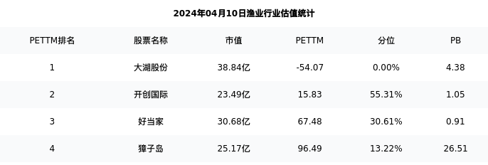 大湖股份最新报告期数据为三季度,下表汇总了渔业行业内市值靠前的公司三季度主要经营数据