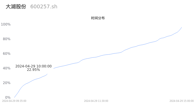 600257大湖股份2024年04月29日成交41.65万手,成交金额2.51亿元,相较昨日缩量3.40万手,换手率8.66%,成交清淡。