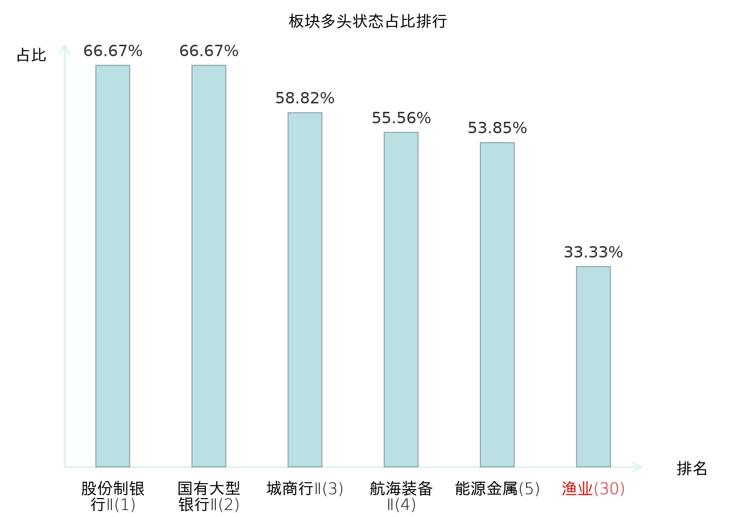 从主力宝信号数据分析,大湖股份所属的渔业板块中共2只股票处于主力多头状态,主力多头状态占比在全行业中排名第30位,较昨日上升61位;较高的排名表明主力对于该板块整体看多意愿较强;此次排名大幅上升反映主力对该板块态度明显转强。全市场所有行业板块中主力多头状态占比排名中,股份制银行Ⅱ板块位居第一;渔业板块名次提升最快,较昨日上升61位;这些变动揭示了主力资金在不同行业间的偏好强化趋势,为投资者判断板块相对强度及潜在关注方向提供了客观依据。
