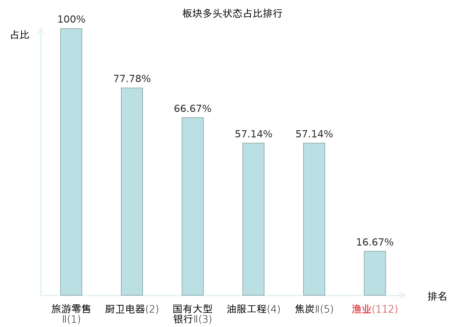 从主力宝信号数据分析,大湖股份所属的渔业板块中只有1只股票处于主力多头状态,主力多头状态占比在全行业中排名第112位,较昨日下降63位。排名的下降可能反映了主力对该板块态度的变化,表明主力整体看多意愿有所减弱。全市场所有行业板块中,旅游零售Ⅱ板块的主力多头状态占比最高,位居第一;房地产服务板块名次提升最快,较昨日上升71位。这些变动揭示了不同行业间主力资金动向的趋势,为投资者提供了关于市场情绪和潜在投资机会的重要线索。