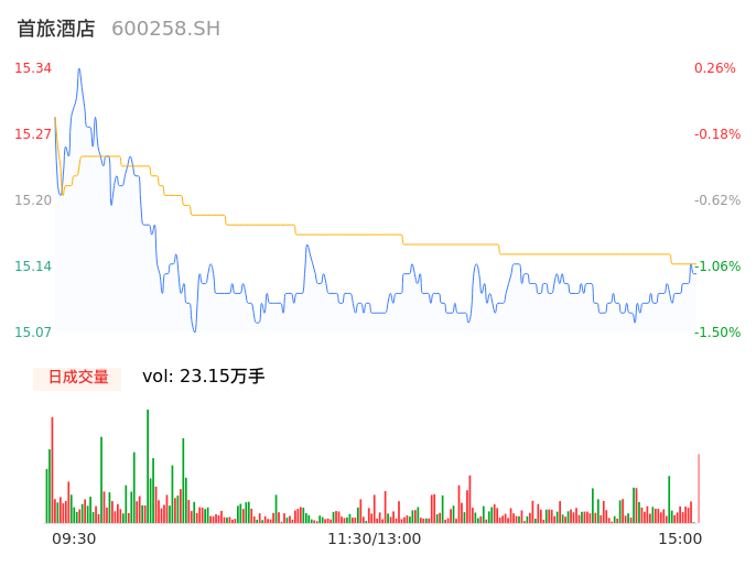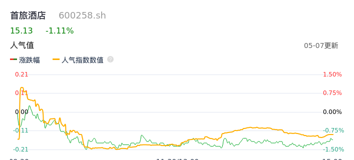 05月07日,首旅酒店收报15.13,股价涨幅-1.11%,成交金额3.51亿元,换手率2.07%。