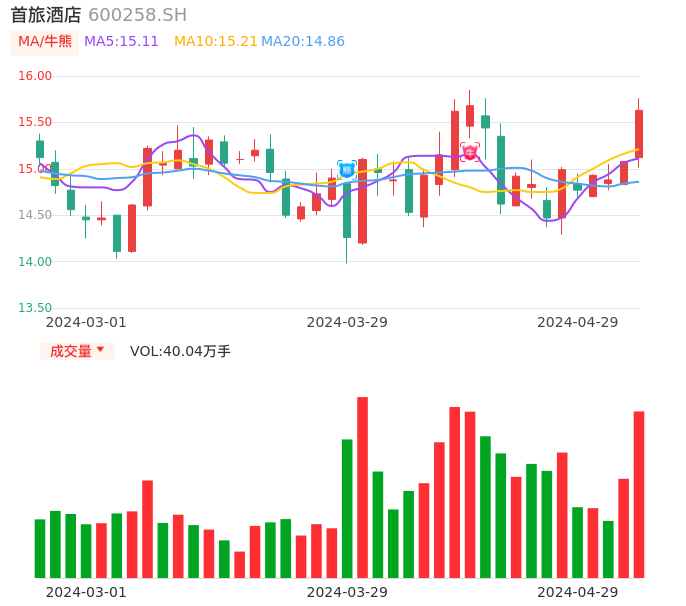 04月29日,首旅酒店收报15.63,股价涨幅3.65%,成交金额6.19亿元,换手率3.59%。