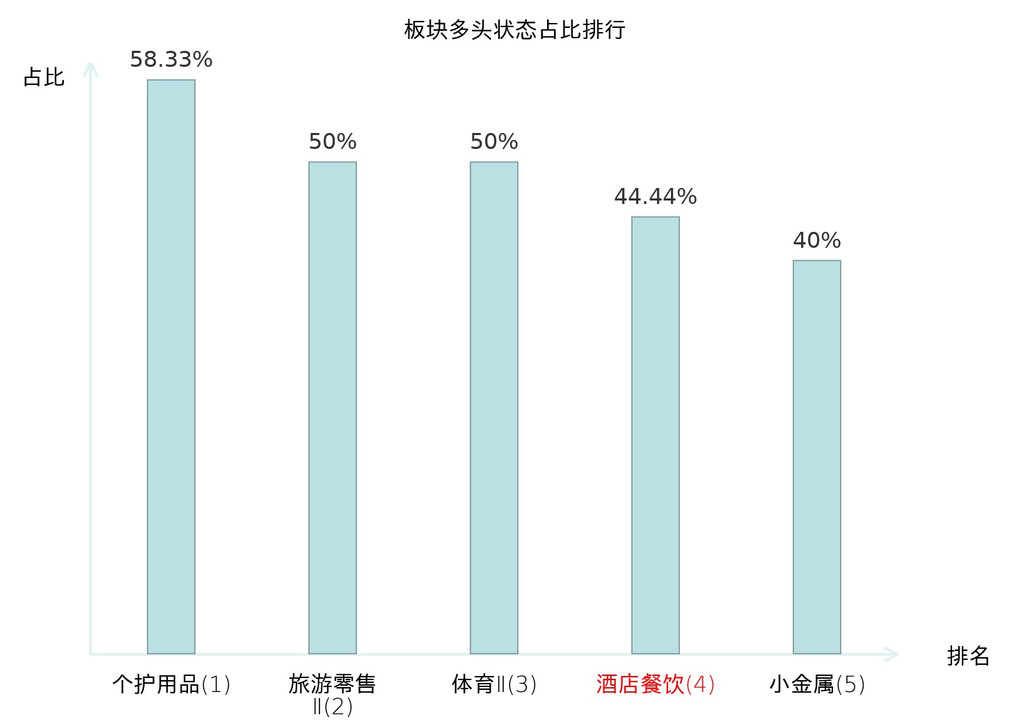 全市场所有行业板块中主力多头状态占比排名中,个护用品板块位居第一。乘用车板块名次提升最快,较昨日上升87位。