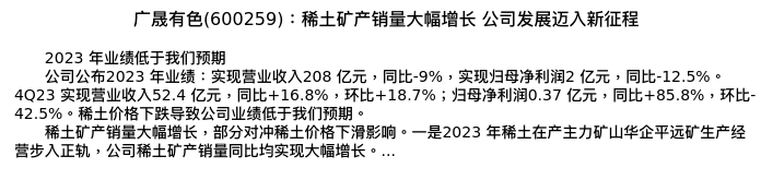 值得注意的是:2024年04月中金公司的王政/齐丁分析师,首次发布关于广晟有色的研究报告,标题为:广晟有色(600259):稀土矿产销量大幅增长 公司发展迈入新征程。