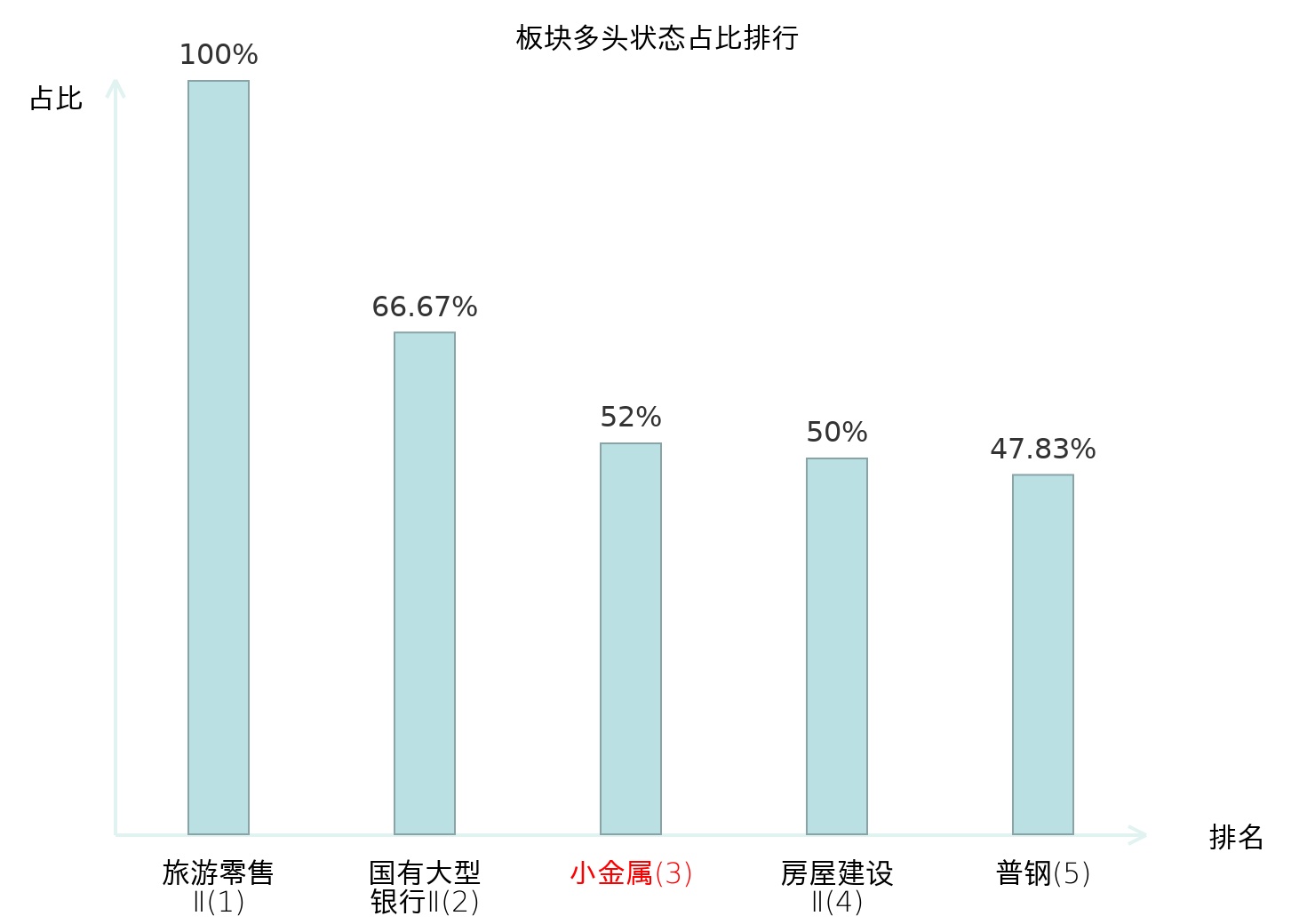 从主力宝信号数据分析,中稀有色所属的小金属板块中共13只股票处于主力多头状态,主力多头状态占比在全行业中排名第3位,较昨日上升1位。较高的排名表明主力对于该板块整体看多意愿较强,此次排名小幅上升进一步强化了该板块在主力资金配置中的相对优势地位;全市场所有行业板块中主力多头状态占比排名中,旅游零售Ⅱ板块位居第一;其他电源设备Ⅱ板块名次提升最快,较昨日上升55位。这些变动反映了主力资金在不同行业间的结构性偏好变化,为投资者评估板块持续性及潜在轮动机会提供了客观依据。