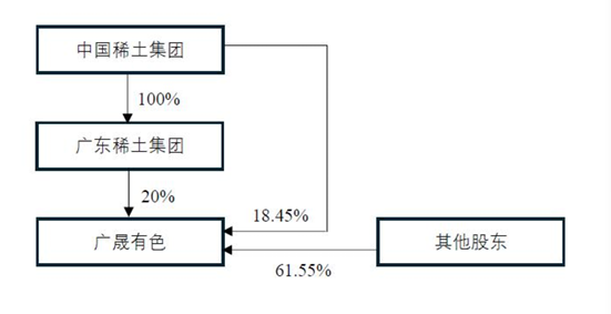 股权结构显示,广东稀土集团系中国稀土集团全资子公司,本次权益变动前,中国稀土集团通过广东稀土集团,间接持有广晟有色1.29亿股普通股,占上市公司总股本的38.45%。