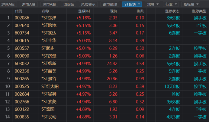 今日,ST股板块继续走强,个股频掀涨停潮,截止今日(12月3日)午间收盘,*ST东洋等共14只个股涨停,其中,不少个股已实现多日连板。