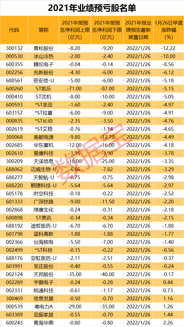 深夜预亏潮,一批股票早盘重挫