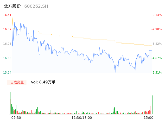 04月23日,北方股份收报16.09,股价涨幅-4.62%,成交金额1.38亿元,换手率5.00%。