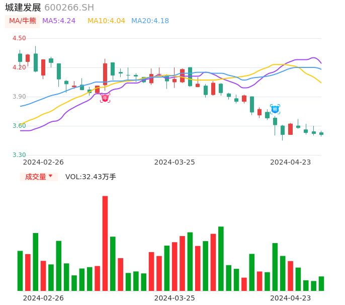 04月23日,城建发展收报3.51,股价涨幅-0.28%,成交金额1.14亿元,换手率1.51%。