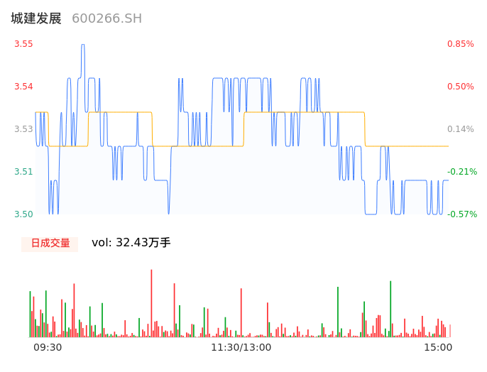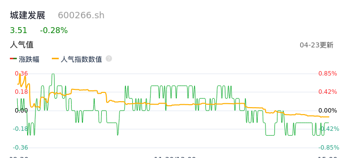 04月23日,城建发展收报3.51,股价涨幅-0.28%,成交金额1.14亿元,换手率1.51%。