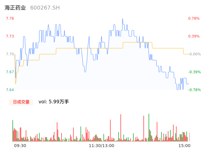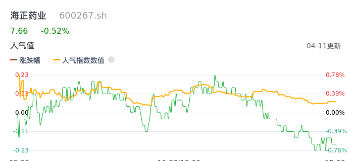 04月11日,海正药业收报7.66,股价涨幅-0.52%,成交金额4615.32万元,换手率0.50%。