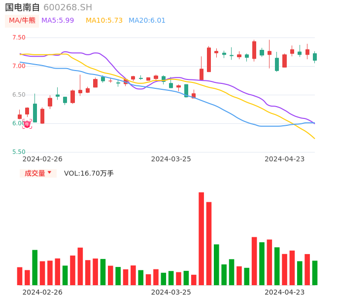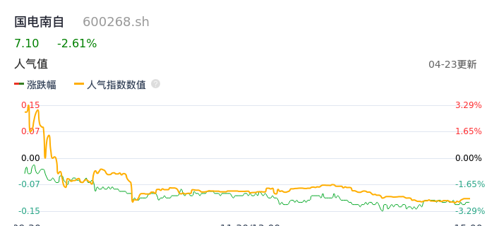 04月23日,国电南自收报7.10,股价涨幅-2.61%,成交金额1.19亿元,换手率2.00%。