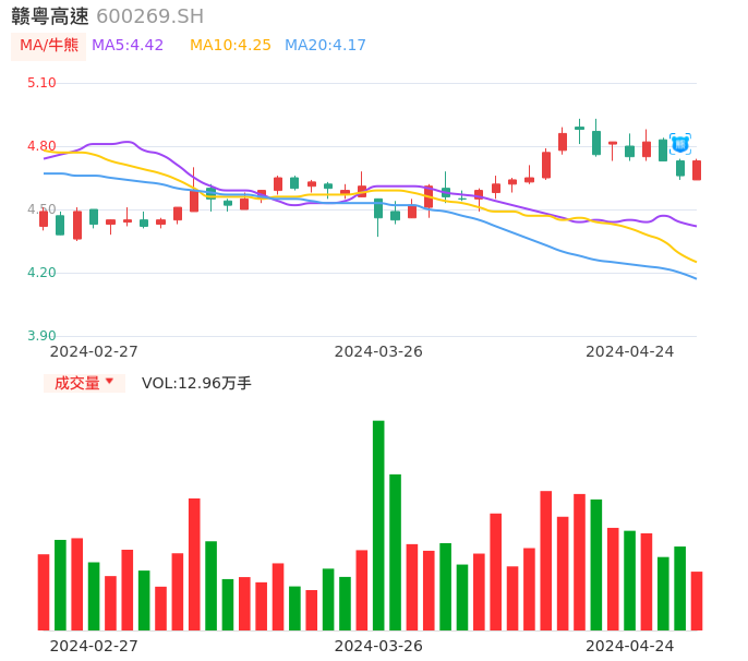 04月24日,赣粤高速收报4.73,股价涨幅1.50%,成交金额6092.93万元,换手率0.55%。