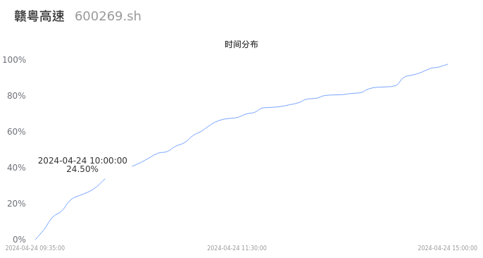 600269赣粤高速2024年04月24日成交12.96万手,成交金额6092.93万元,相较昨日缩量5.54万手,换手率0.55%,成交清淡。
