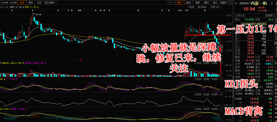 今天冲高回落,主要受到盘面的影响,否则这个这个中阳线就比较漂亮,中阳线站上44日线,MACD背离,KDJ开始拐头,今天的修复也验证公司的逻辑被资金认可,倒锤上影线,修复已来,继续关注。