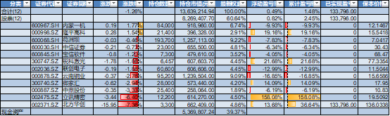 长线思路下,藏宝图还是维持了近60%的仓位,所以今天还是受整体情绪的影响,净值回撤1.26%,模拟收益36.39%。普跌的时候,更要保持定力,恐慌性的出清后市修复也没有我们什么事了,我们尽量从个股的策略角度来看是否出现扭转性的变化。今天关注个股中,仅内蒙一机和隆平小幅续费,北方华创和立讯跌幅比较大,我们结合技术来看看策略的思路。
