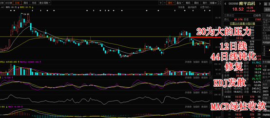 今天公布了业绩预告,经营逐步修复,消息面上农村部发布《2021年农业转基因生物监管工作方案》,政策推动种业景气上行,技术面看继续放量修复,回到蓄势平,MACD绿柱收敛,KDJ仍处于上行,弱势之下景气明朗的个股预计会持续受到资金的关注,虽然今日留下长上影,但避免了12日线死叉,继续关注上方20的压力。