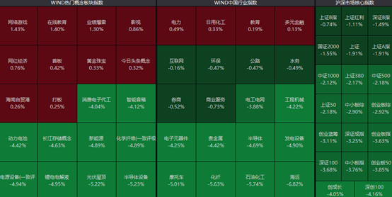 今天遭遇黑色星期四,大小指数持续走弱,创业板大跌3.6%,个股普跌,盘面上,前期抱团板块成为杀跌主力,医疗器械、锂电、光伏等板块均大幅走弱,歌尔股份、中远海控、恒力石化等抱团股重挫,资金流入游戏、在线教育、影视传媒等超跌个股,农业、稀土等版块脉冲拉升,整体看,市场弃高就低现象明显,节前风险偏好进一步下降,两市成交9155亿元,北向方面净流出64.05亿元,创三个月新高。