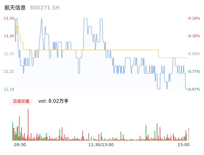 11月29日,航天信息收报11.20,股价涨幅-0.88%,成交金额9010.22万元,换手率0.43%。