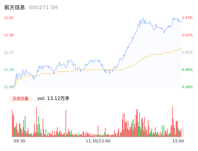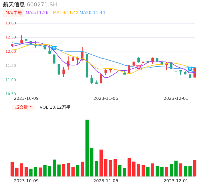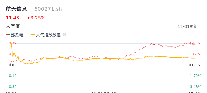 12月01日,航天信息收报11.43,股价涨幅3.25%,成交金额1.48亿元,换手率0.71%。