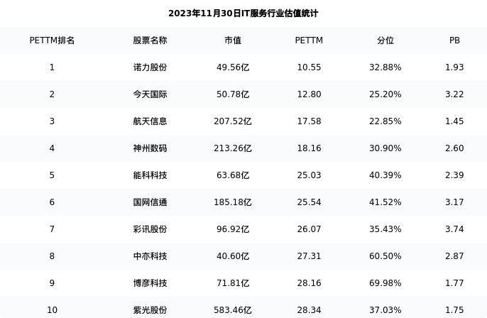 从估值角度看:航天信息最新市盈率PETTM为17.58,在行业内排名3/120,处于22.85分位。