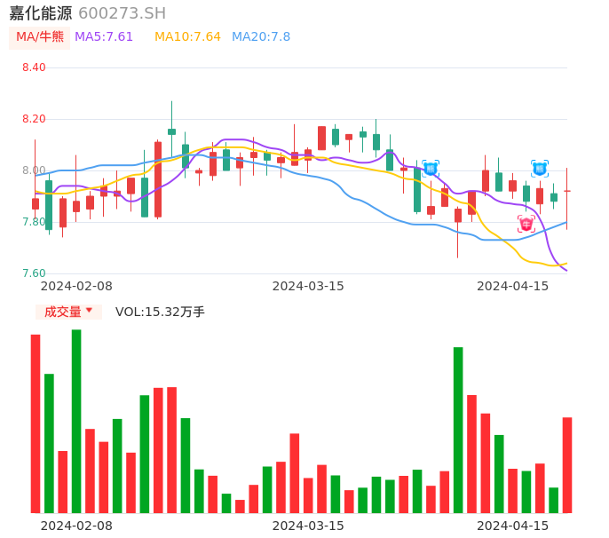04月15日,嘉化能源收报7.92,股价涨幅0.51%,成交金额1.21亿元,换手率1.10%。