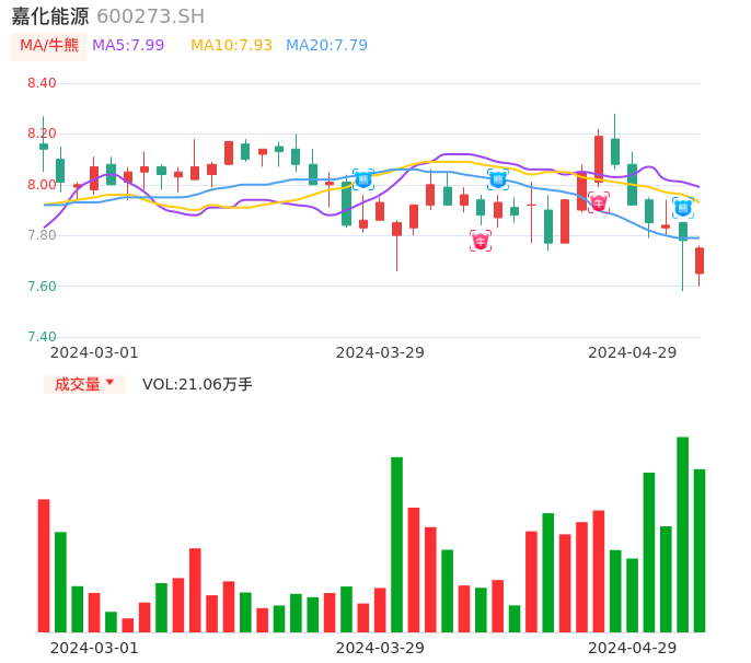 值得注意的是:2024年04月海通证券的刘威/孙维容分析师,首次发布关于嘉化能源的研究报告,标题为:嘉化能源(600273):23年归母净利润同比下滑26.21% 公司持续布局氢能业务。