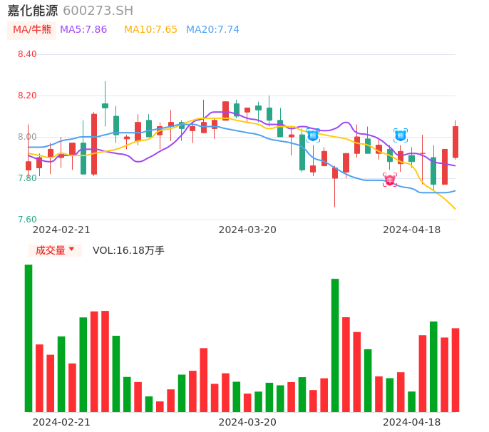 值得注意的是:2024年04月海通证券的刘威/孙维容分析师,首次发布关于嘉化能源的研究报告,标题为:嘉化能源(600273):23年归母净利润同比下滑26.21% 公司持续布局氢能业务。