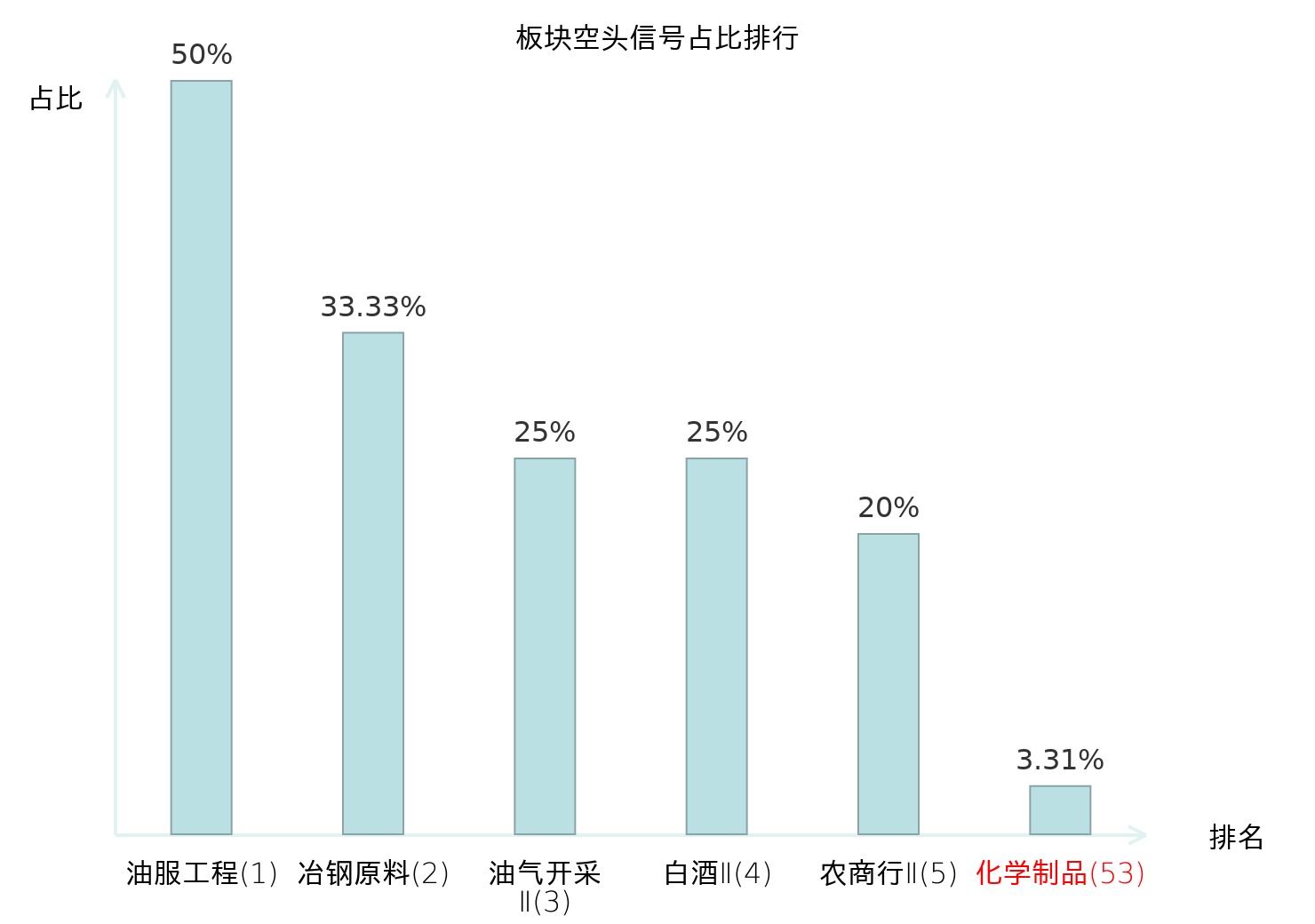 从主力宝信号数据分析,嘉化能源所属的化学制品板块中共6只股票发出主力空头信号,主力空头信号占比在全行业中排名第53位,较昨日下降8位。较高的排名表明主力当日卖出意愿较强,此次排名下降可能反映了主力对该板块整体卖出压力有所缓解。全市场所有行业板块中主力空头信号占比排名中,油服工程板块位居第一。白酒Ⅱ板块名次提升最快,较昨日上升110位。这些变动揭示了不同行业间主力资金行为的差异,为投资者评估市场风险分布与潜在调整节奏提供了客观依据。