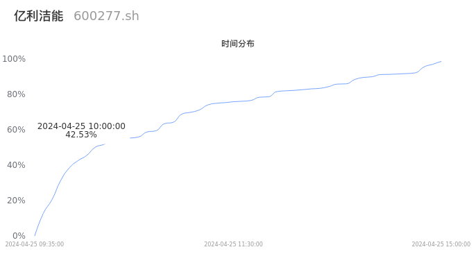 600277亿利洁能2024年04月25日成交71.72万手,成交金额1.39亿元,相较昨日缩量38.41万手,换手率2.01%,成交清淡。