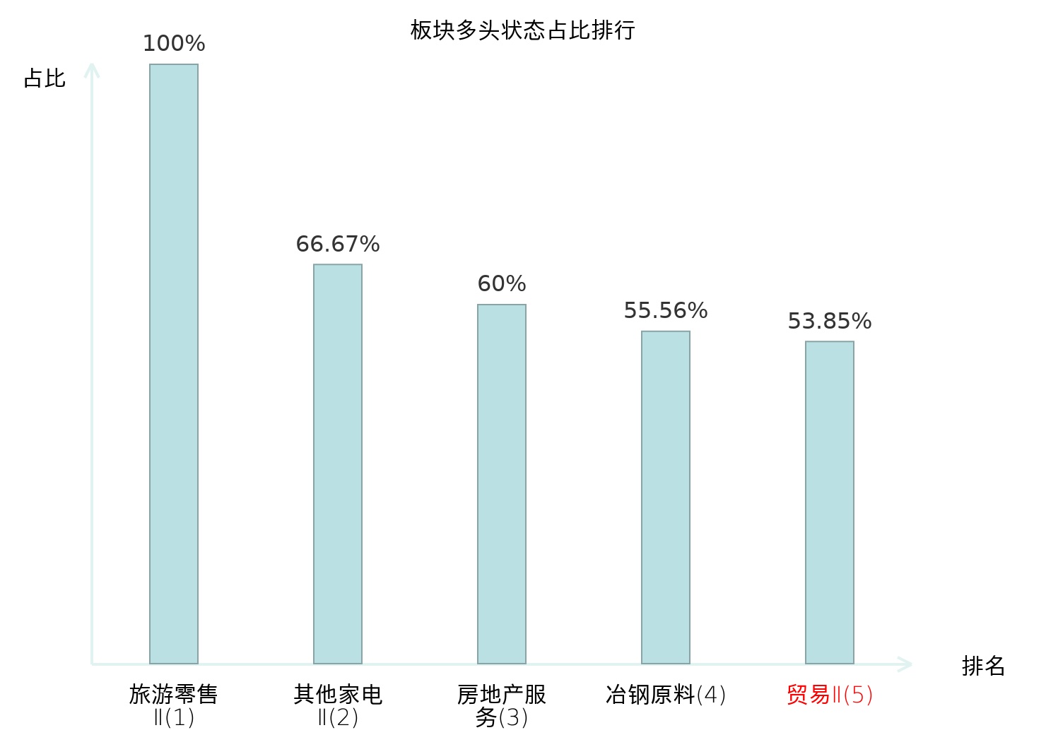 全市场所有行业板块中主力多头状态占比排名中,旅游零售Ⅱ板块位居第一。保险Ⅱ板块名次提升最快,较昨日上升65位。