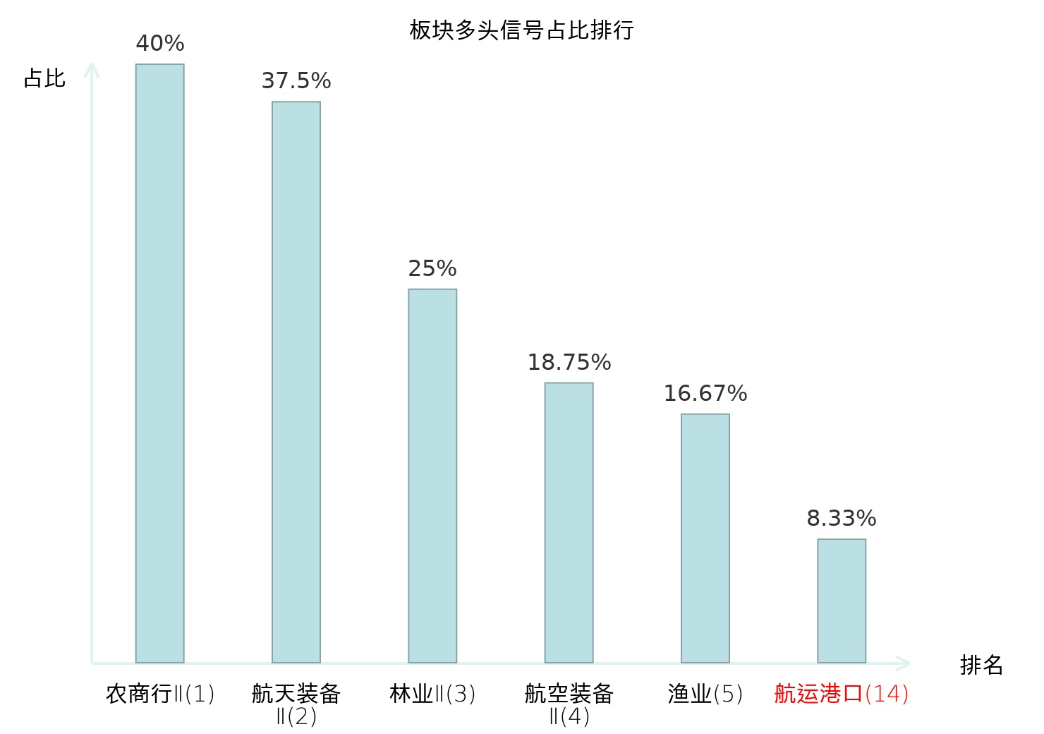 全市场所有行业板块中主力多头信号占比排名中,农商行Ⅱ板块位居第一。林业Ⅱ板块名次提升最快,较昨日上升122位。