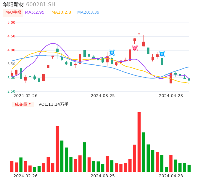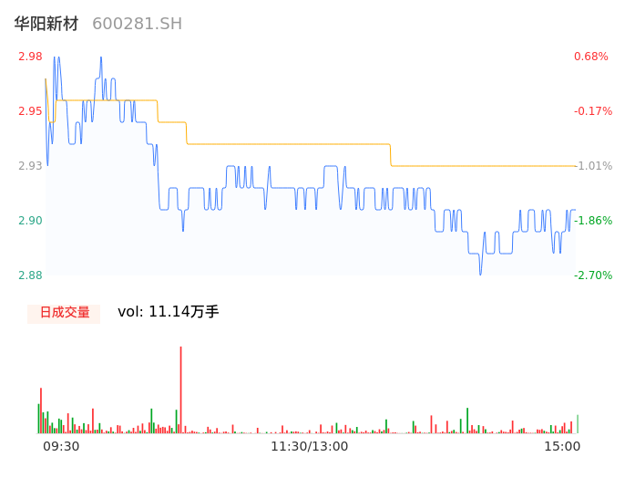 04月23日,华阳新材收报2.90,股价涨幅-2.03%,成交金额3260.11万元,换手率2.17%。