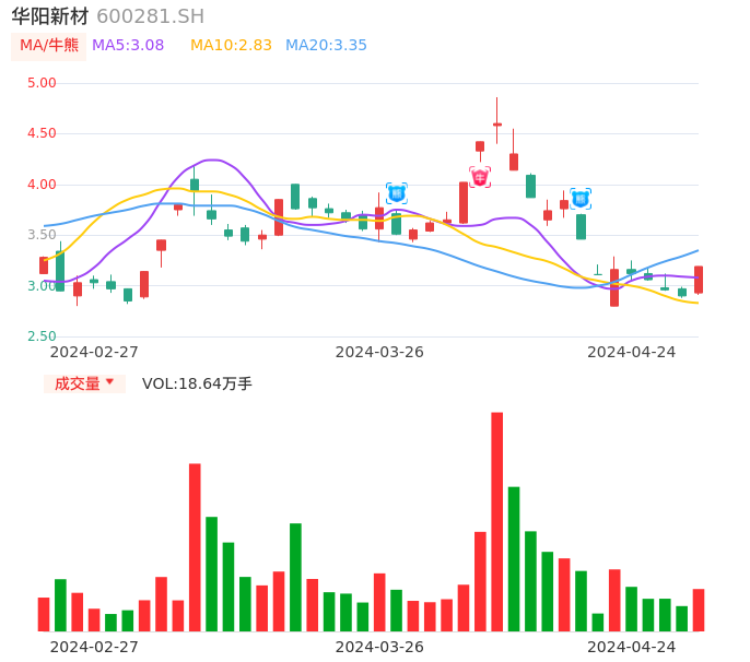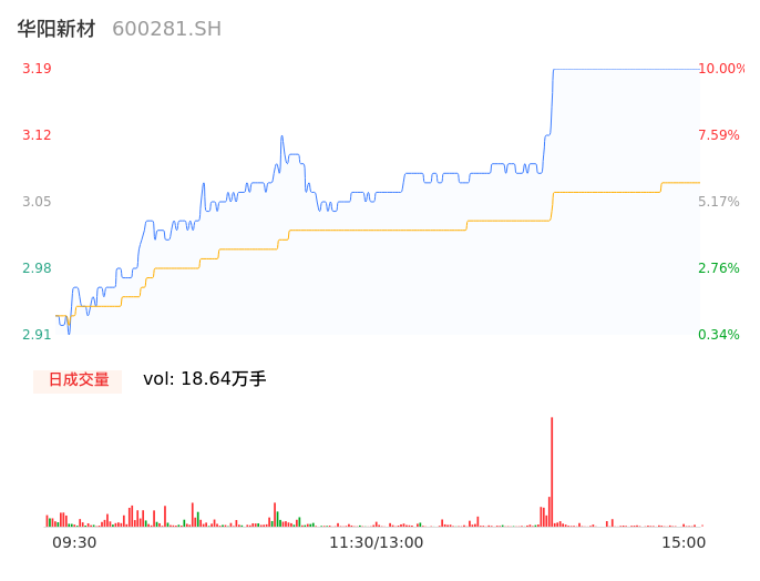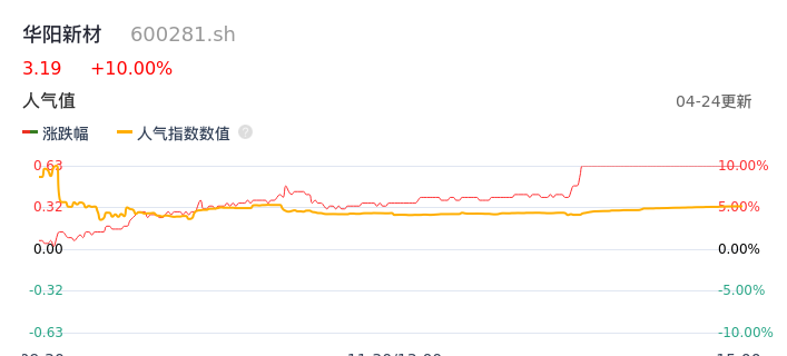 04月24日,华阳新材收报3.19,股价涨幅10.00%,成交金额5714.53万元,换手率3.62%。