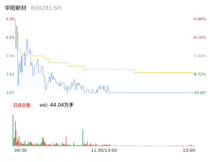 04月10日,华阳新材收报3.87,股价涨幅-10.00%,成交金额1.73亿元,换手率8.56%。