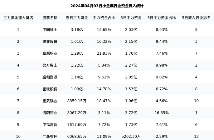 从主力资金流向来看,小金属行业今日主力资金流入86.86亿元,在所有申万二级行业中排名:55/131。