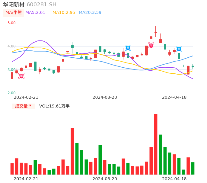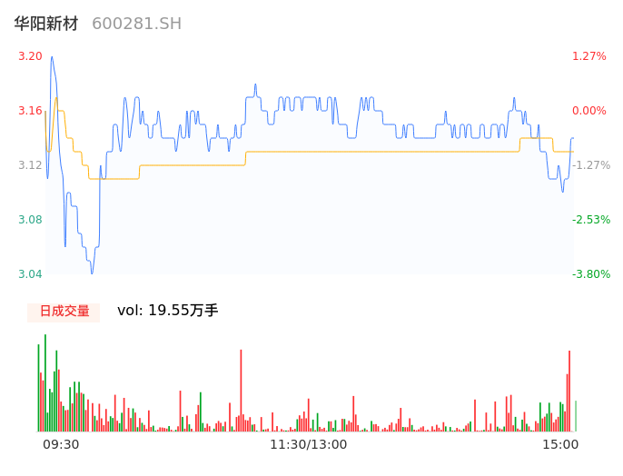 04月18日,华阳新材收报3.12,股价涨幅-1.27%,成交金额6142.69万元,换手率3.81%。