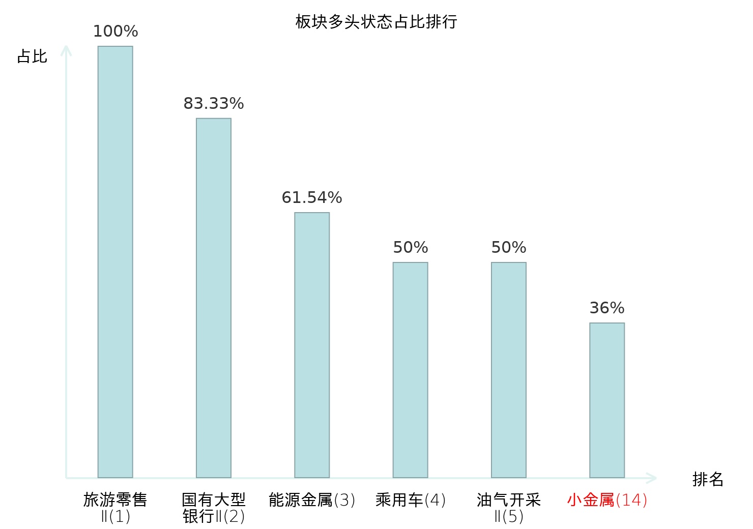 全市场所有行业板块中主力多头状态占比排名中,旅游零售Ⅱ板块位居第一。特钢Ⅱ板块名次提升最快,较昨日上升72位。