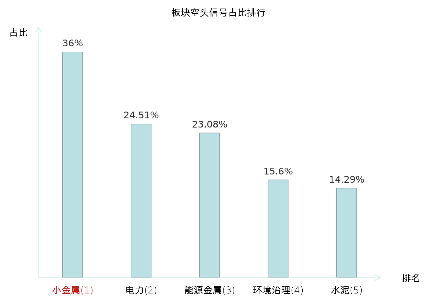 全市场所有行业板块中主力空头信号占比排名中,小金属板块位居第一。计算机设备板块名次提升最快,较昨日上升113位。
