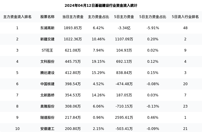 从主力资金流向来看,基础建设行业今日主力资金流入12.70亿元,在所有申万二级行业中排名:5/131。