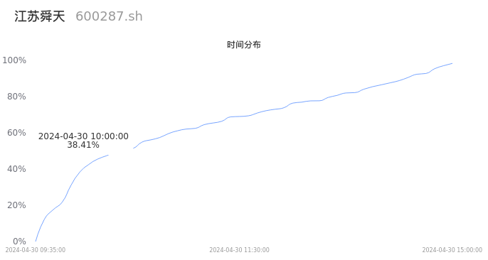 600287江苏舜天2024年04月30日成交10.46万手,成交金额4711.55万元,相较昨日缩量3192手,换手率2.39%,成交清淡。