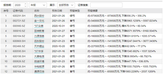 据Wind统计,截至目前,业绩预告亏损在10亿以上的已超过10家公司,其中西水股份预计亏损最多,是目前的“亏损王”。