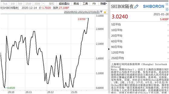 对于当前资金面,红塔证券李奇霖指出,首先,1月中下旬是传统的缴税时点,财政存款上缴会回笼流动性。其次,央行的公开市场操作释放出不希望继续宽松的意图,公开市场操作就投放几十亿,即使本周大规模流动性到期,央行也没有改变几十亿的公开市场操作投放。再次,1月的信贷投放高增长也导致了资金面紧张。最后,股票公募持续天量发行,T+0的理财产品出现了赎回,这也导致了资金面的紧张和短债的抛压。