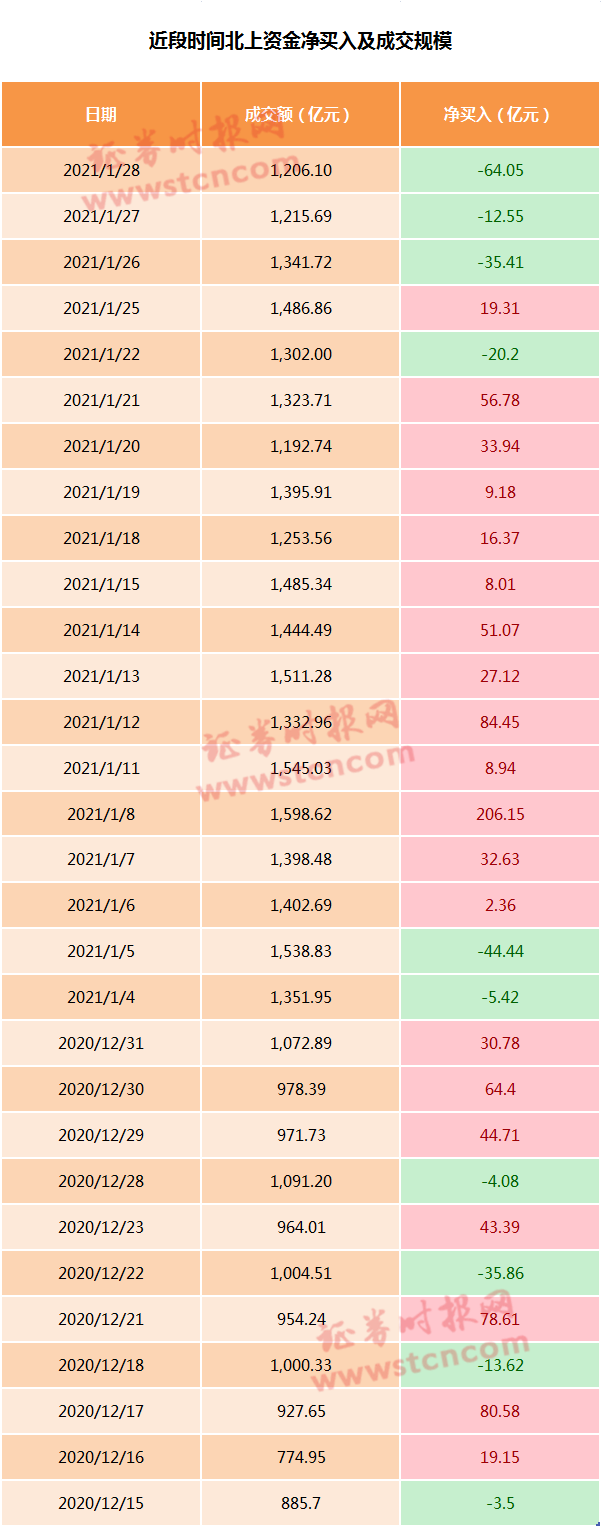 在此之前,北上资金总体连续净买入,自2021年1月6日起,一度连续12个交易日净买入。