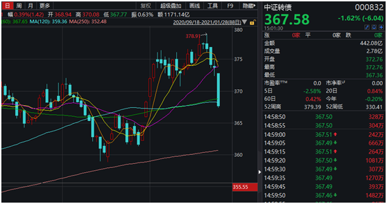 行情数据显示,表征可转债市场表现的中证可转债指数本周连续4个交易日下跌,其中今天下跌1.62%,为最近一段时间最大跌幅。