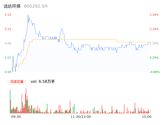 04月19日,远达环保收报5.08,股价涨幅1.20%,成交金额3349.29万元,换手率0.84%。