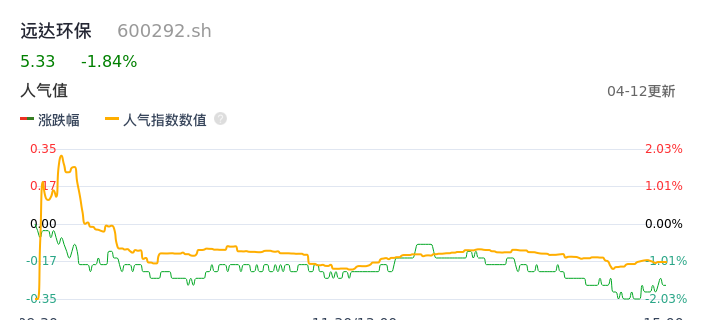 04月12日,远达环保收报5.33,股价涨幅-1.84%,成交金额3065.13万元,换手率0.73%。