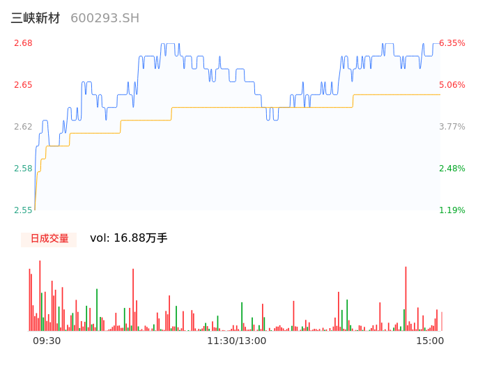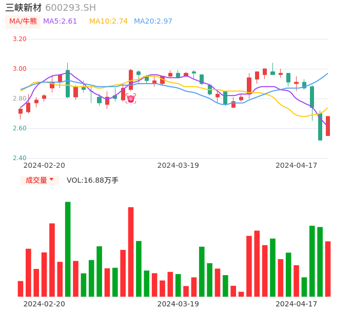 04月17日,三峡新材收报2.68,股价涨幅6.35%,成交金额4455.09万元,换手率1.45%。