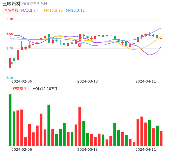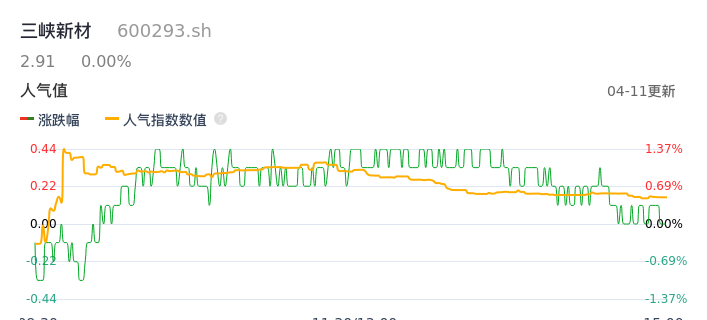 04月11日,三峡新材收报2.91,股价涨幅0.00%,成交金额3559.20万元,换手率1.05%。